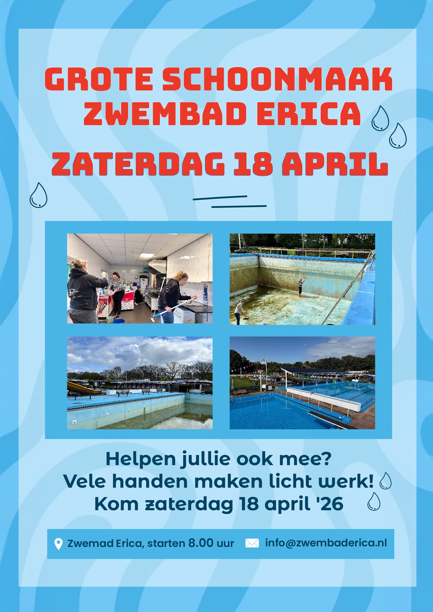 Zwembad Erica organiseert zaterdag 08 augustus 2026 De Nationale ZwemChallenge, geef je op via onze website www.zwembaderica.nl en voeg product toe aan je abonnement 🐬 Start zaterdag, wees op tijd we starten